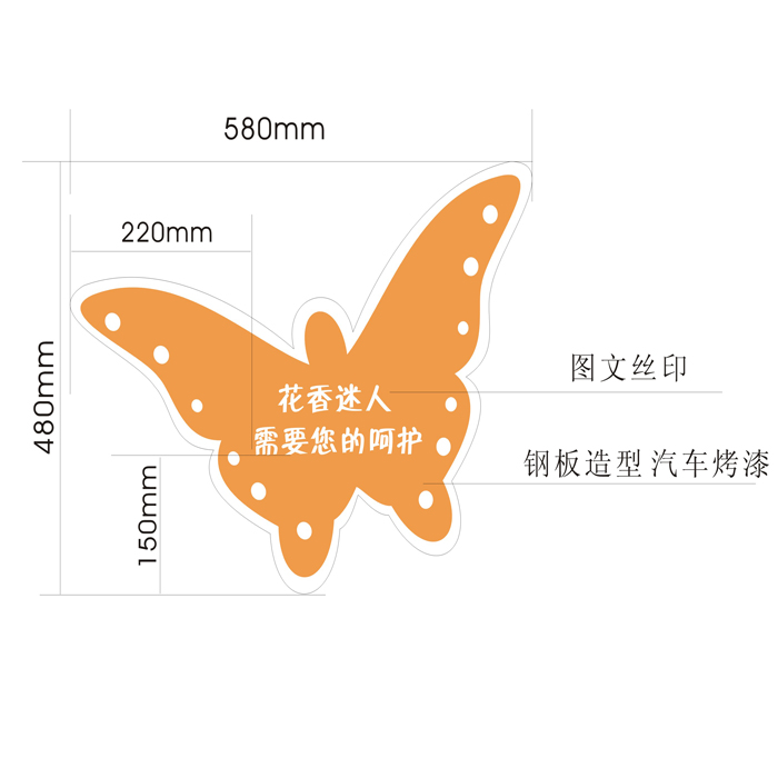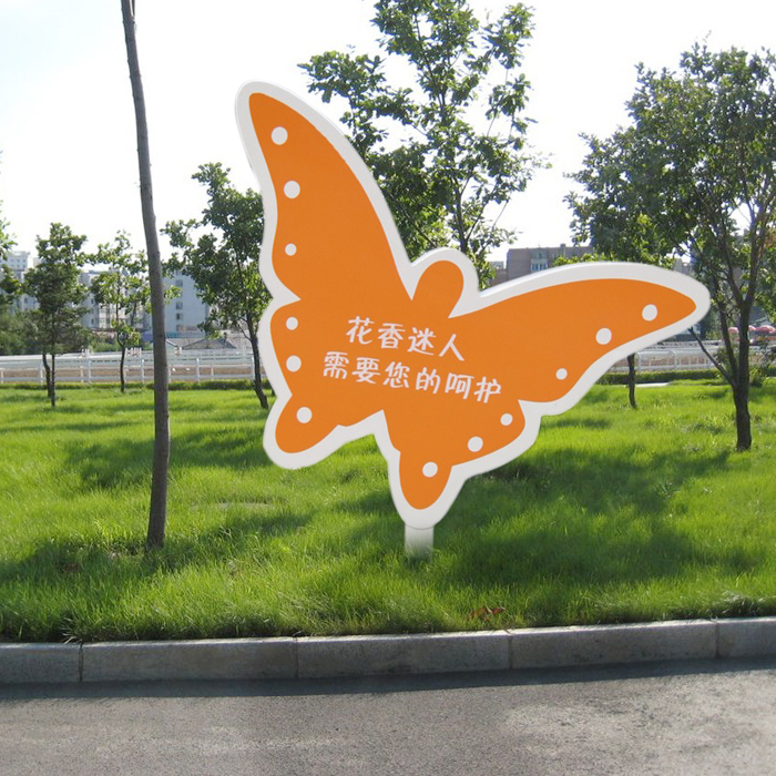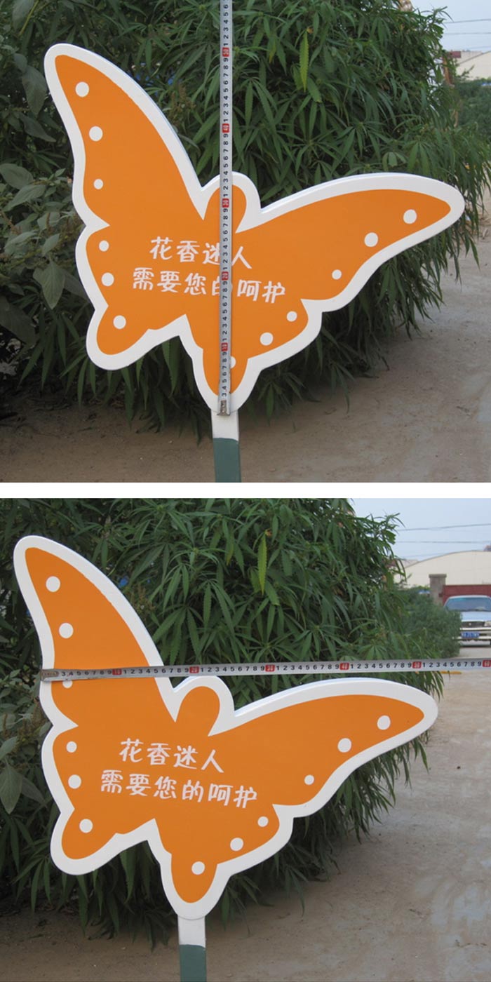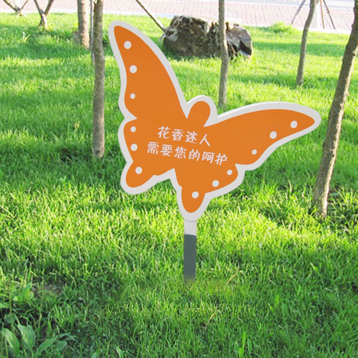 蝴蝶形状花草牌,钢板烤漆草地牌批发,双面的花草牌厂家