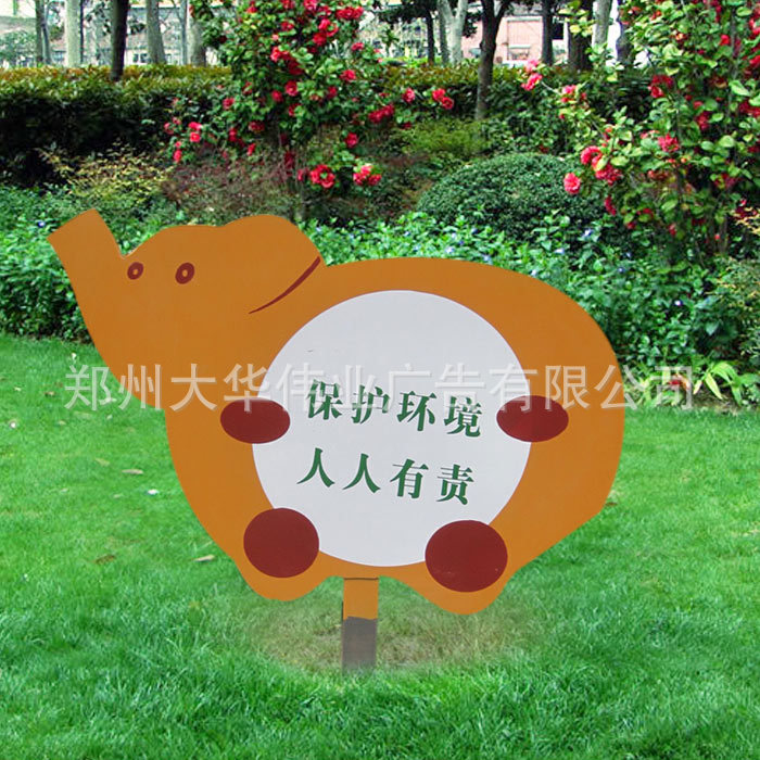 定花草牌是指树立在花草丛中用于提示行人爱护花草的标识牌,又称小草牌或草牌,属于温馨提示的范畴,广泛用于园林绿化、城市绿化温馨提示、小区绿化、工厂、办公区、公园、学校、创建文明城市等等地方起到画龙点睛的作用。
